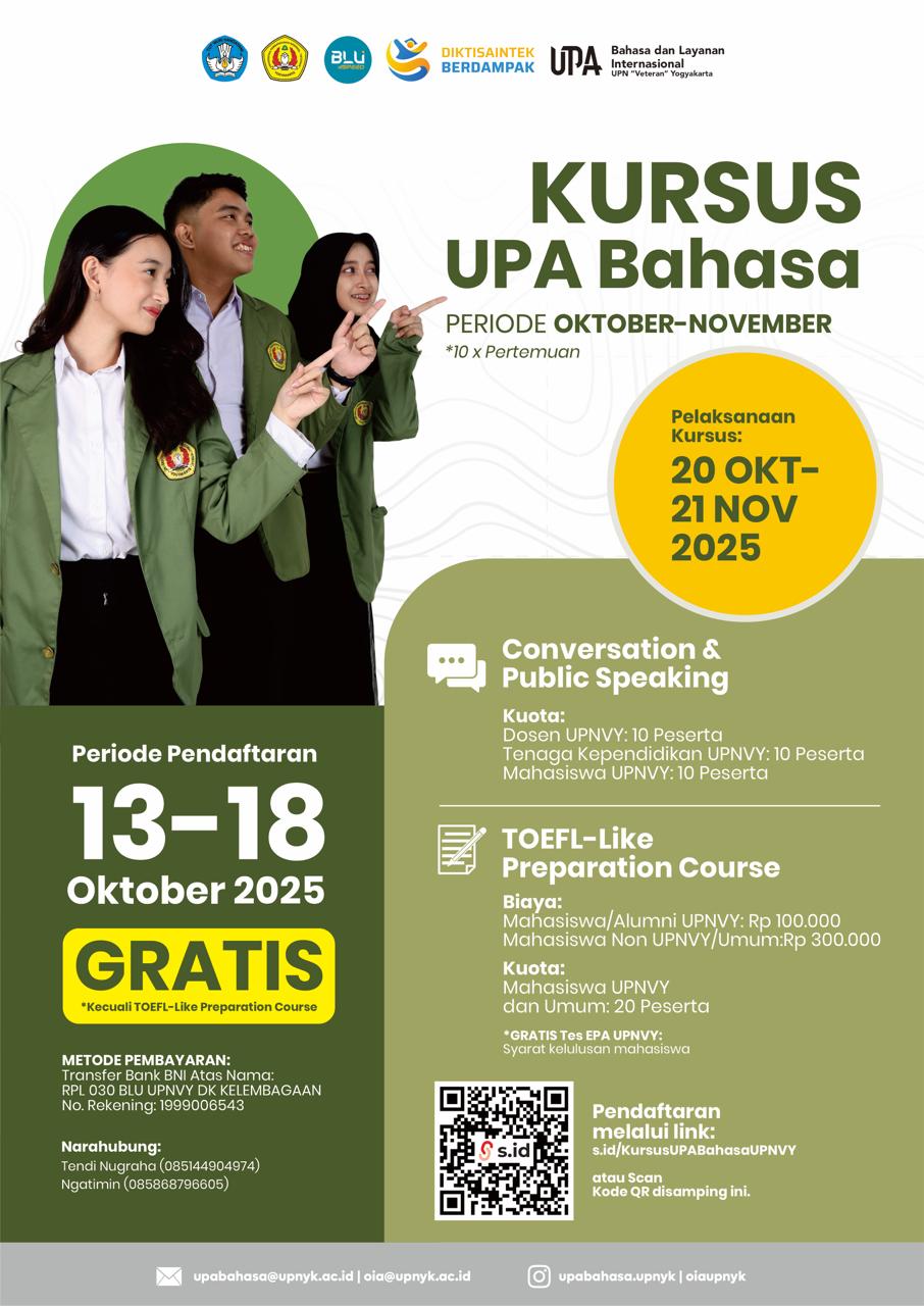 Segera daftar melalui tautan atau scan kode QR: [s.id/kursusUPNBahasaUPNVY]